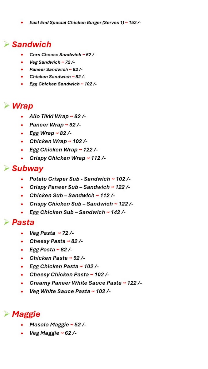 Overall, THE EAST END combines quality with innovation, making it a perfect spot for a quick bite or a leisurely meal. With positive feedback pouring in, it’s clear that this café is a rising star in Bhubaneswar’s food scene.